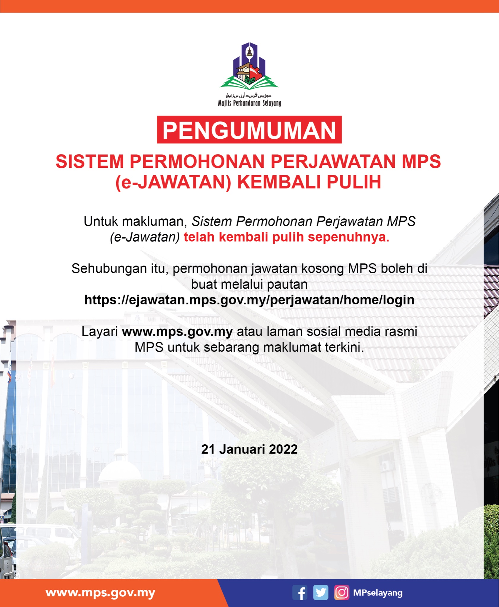 Web 1 min read. Web Jawatan Kosong Majlis Perbandaran Selayang MPS Tarikh Tutup 09 Ogos 2021. TALIAN AM 03-6126 5800 TALIAN BEBAS TOL 1800 222.